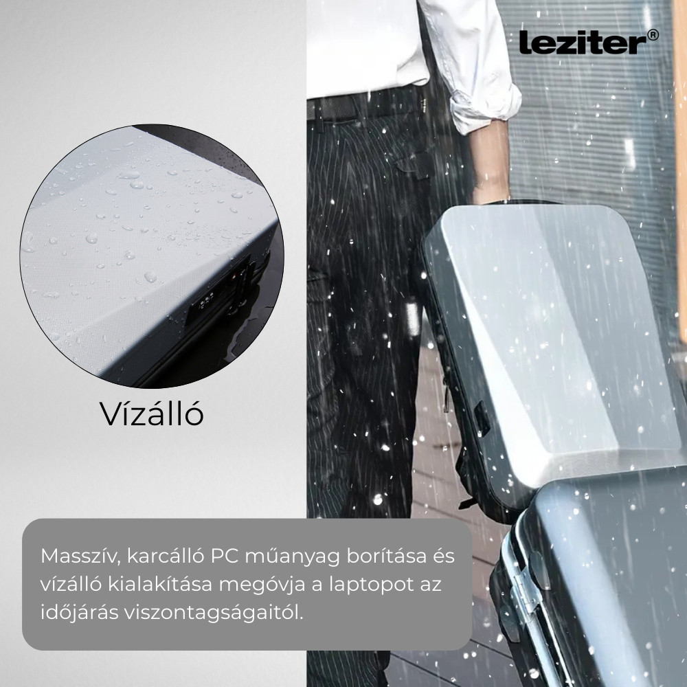 A Leziter Axen merevített USB-s laptop hátizsák mindezt megoldja. Hardshell kialakítású, karc- és ütésálló PC műanyag borítása hosszú élettartamot biztosít, és még a mostoha időjárás sem jelent akadályt: vízlepergető kivitele esőben és hóban is megóvja az eszközeidet. A teljes biztonságról a TSA jóváhagyott háromjegyű számzár gondoskodik – egy olyan nemzetközileg elismert zártípus, amit a repülőtéri hatóságok kulccsal nyithatnak fel sérülés nélkül, így utazás során is biztonságban tudhatod értékeidet.