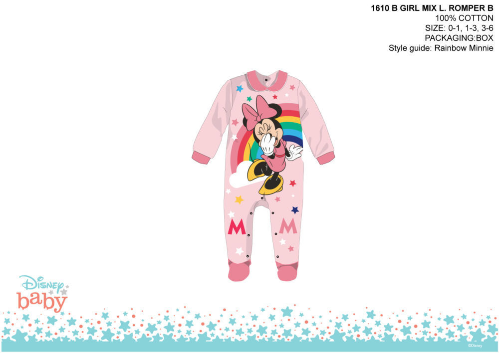 Disney Minnie egér baba rugdalózó - galléros - világosrózsaszín-rózsaszín - 1-3 hónapos babának