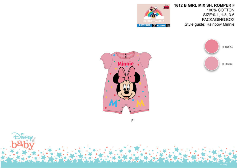 Disney Minnie egér nyári rövid ujjú baba rugdalózó - rózsaszín - 0-1 hónapos babának