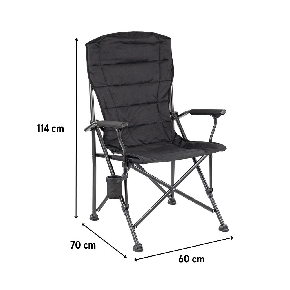 A kétoldali karfák természetes kartartást biztosítanak, ezáltal csökkentik a hosszabb ülés során jelentkező feszültséget a vállakban. A szék kialakítása így pihentetőbb élményt kínál a szabadtéri tevékenységek során.