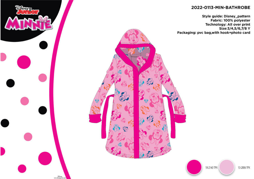 Mikroszálas kapucnis köntös gyerekeknek - Disney Minnie egér