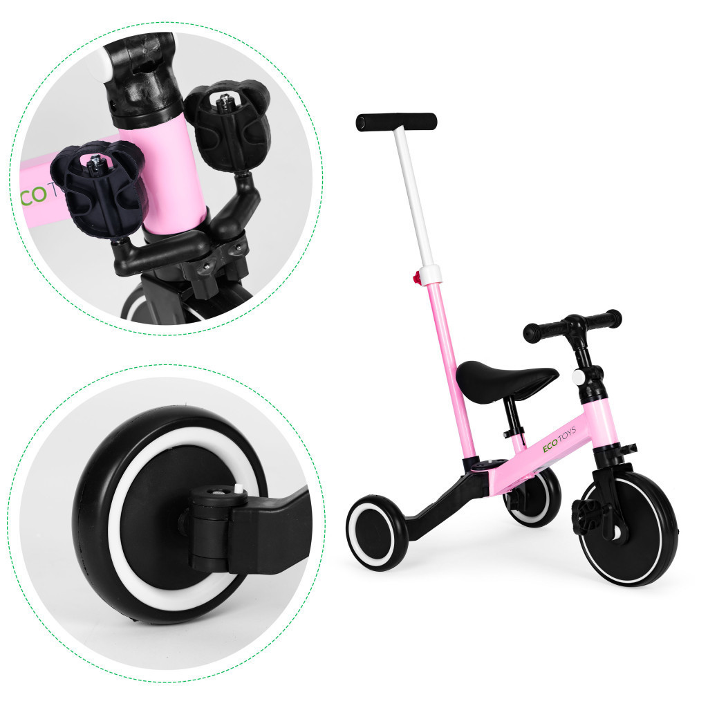 Tricikli tolókarral 2 az 1-ben rózsaszín