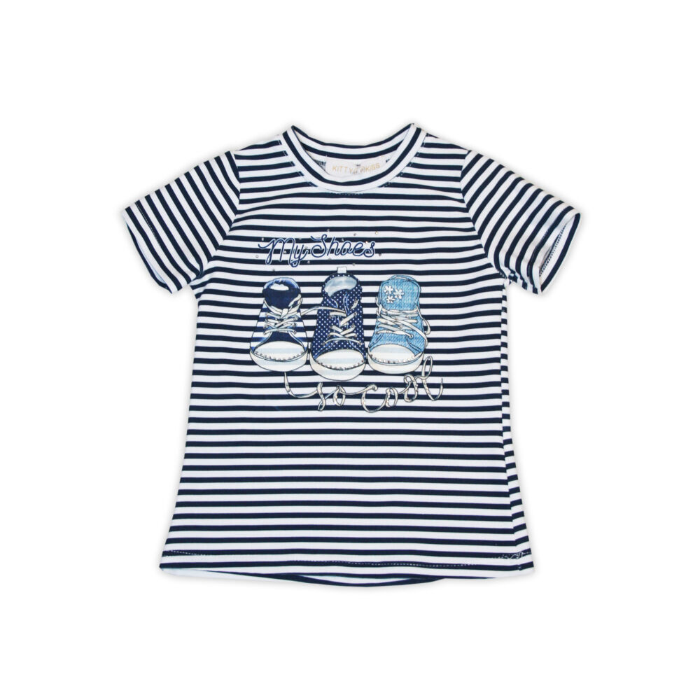 Pamut póló strasszokkal, cipőmintával díszítve - csíkos - 104
