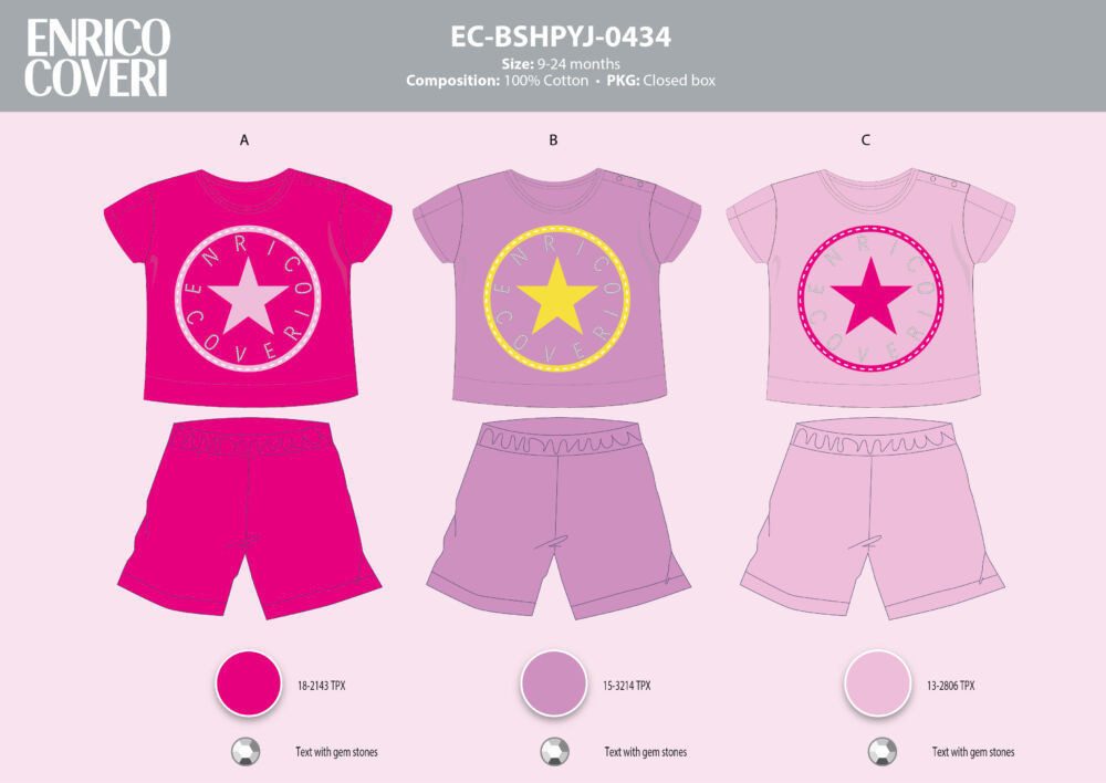 Enrico Coveri rövid ujjú nyári baba pizsama - 100% pamut pizsama - világosrózsaszín - 86