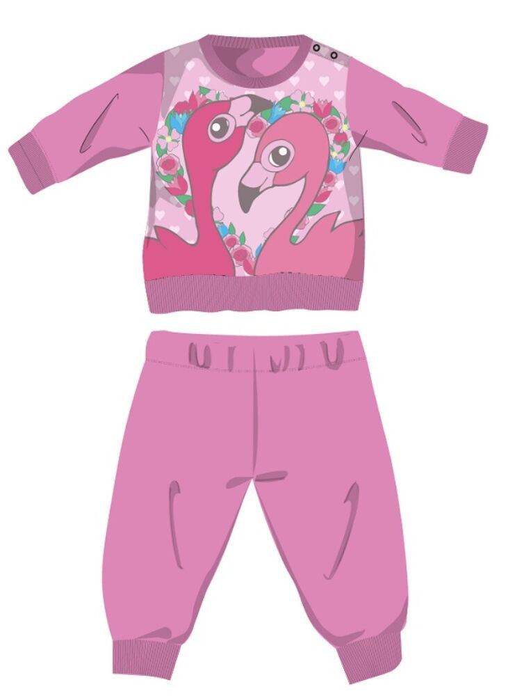 Flamingó téli pamut baba pizsama - interlock pizsama