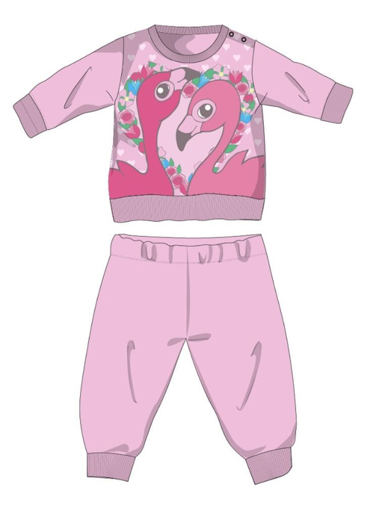Flamingó téli pamut baba pizsama - interlock pizsama - világosrózsaszín - 86