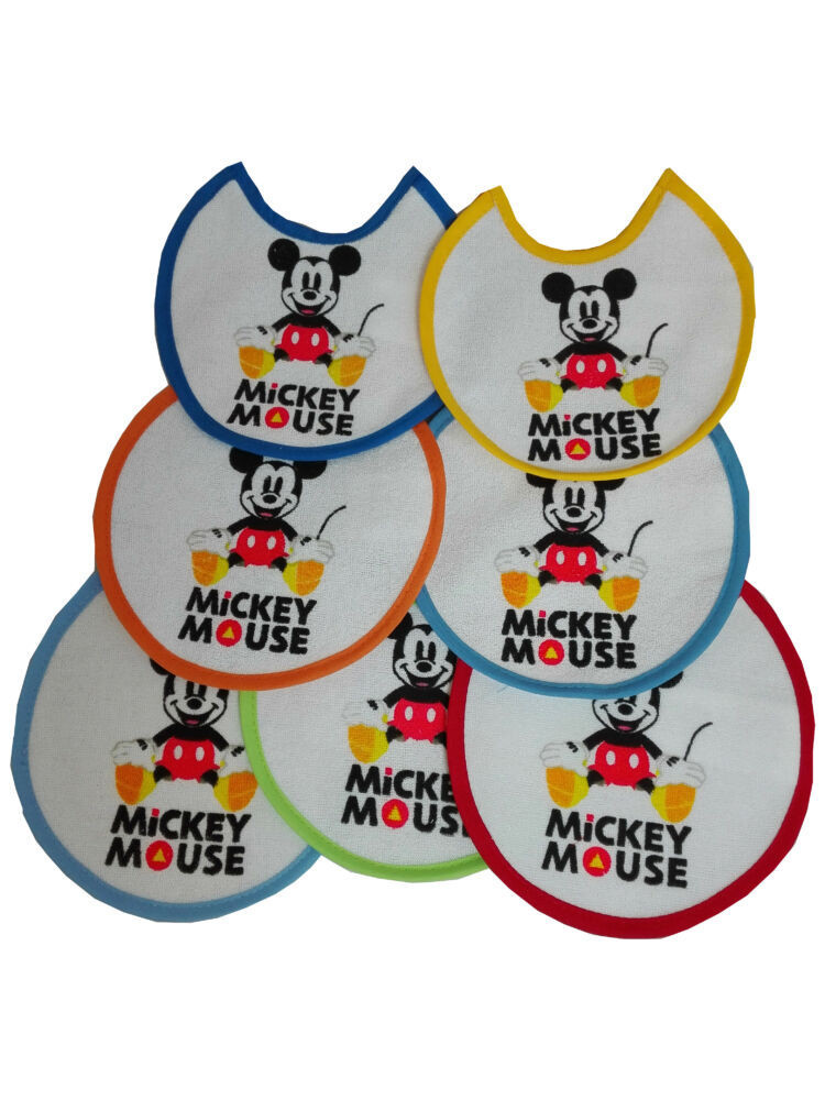 Mickey egér baba előke 7 darab/csomag - pamut előke - 16x16 - világoskék-középkék-sötétkék-sárga-narancssárga-piros-zöld