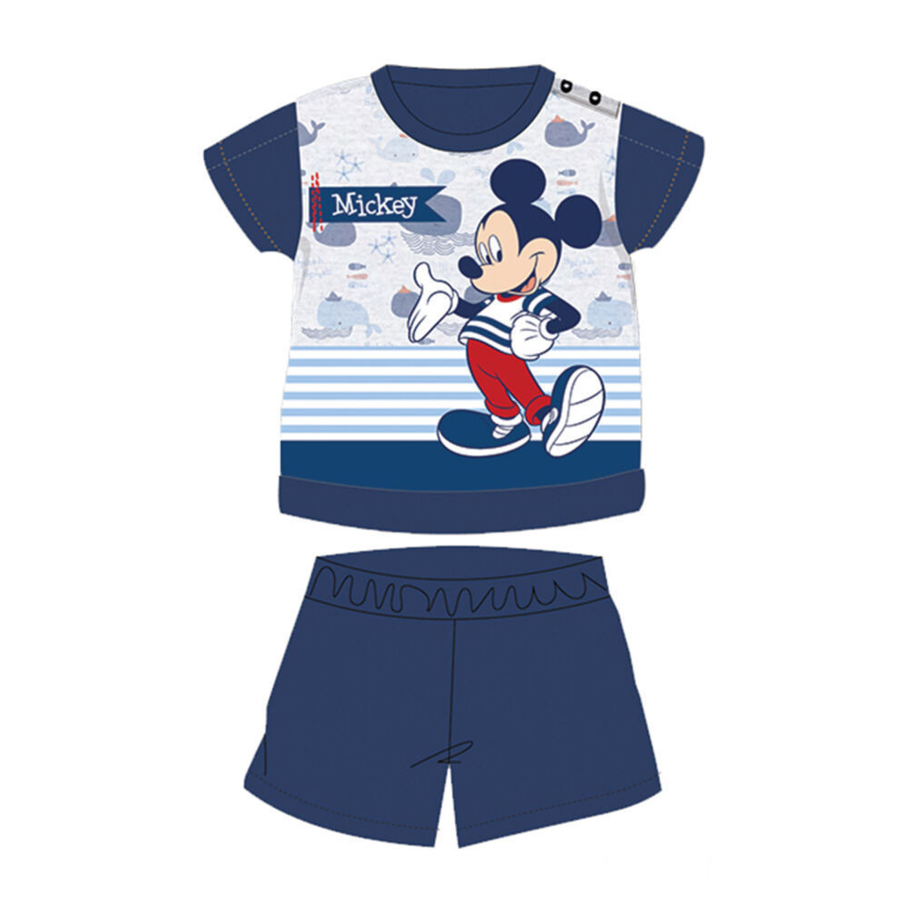 Nyári rövid ujjú pamut baba pizsama - Disney Mickey egér - csíkos - sötétkék - 92