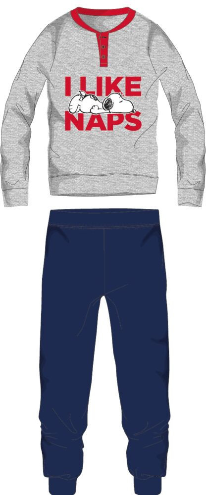 Snoopy férfi vékony pamut pizsama - jersey pizsama - világosszürke-sötétkék - S
