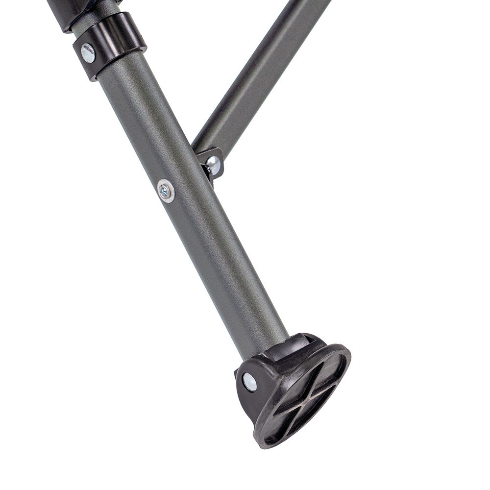 - Stabilitás minden talajon – a porszórt acélcső váz és a csúszásgátló lábvégek együtt masszív támaszt nyújtanak a stég mellett, parton vagy akár kavicsos terepen.